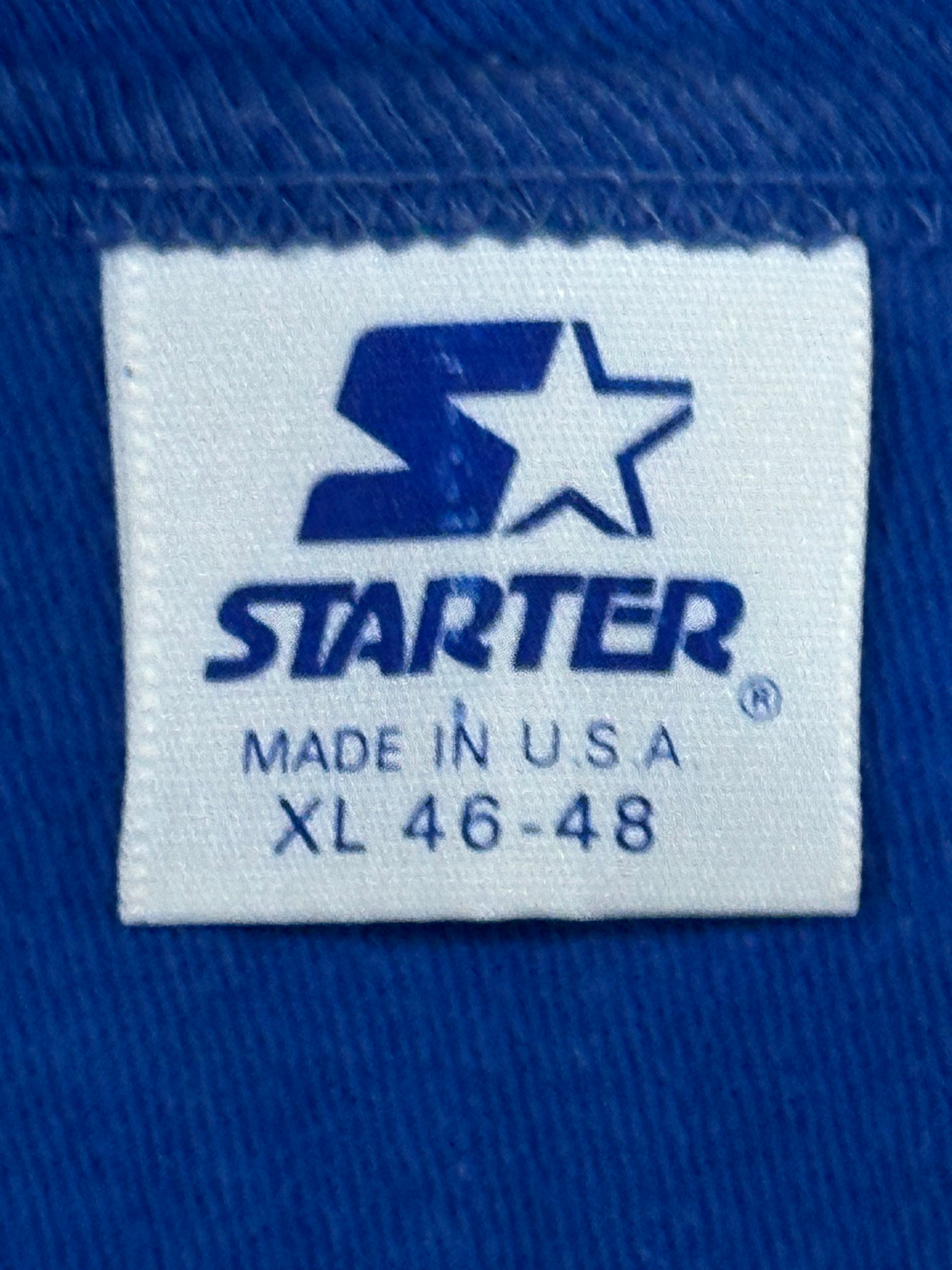 Runs small. Fits more like a large . Made by Starter
