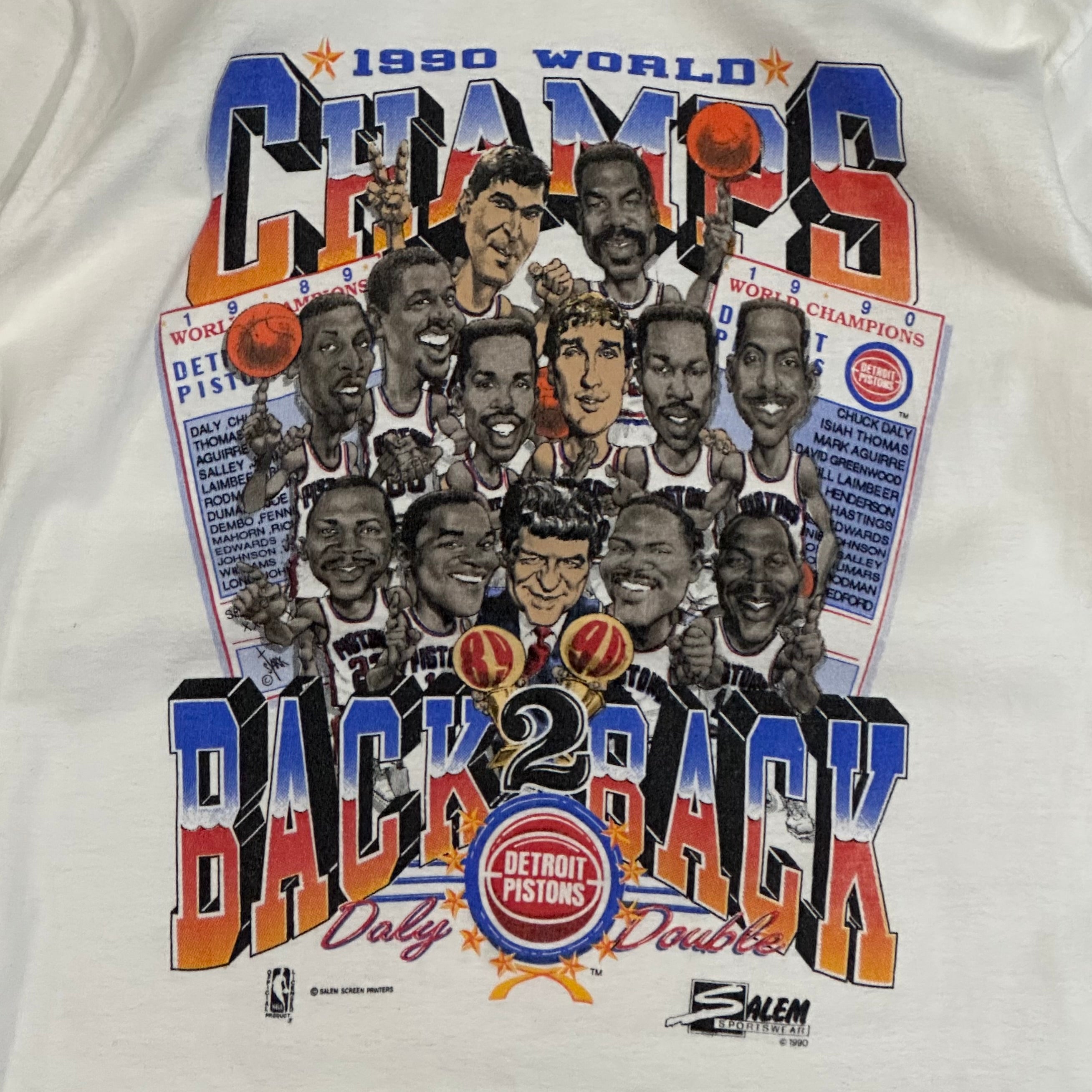1989-90 Back To Back Champions Detroit Pistons Tshirt Sz L (216)